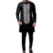 The men’s outfit completes the look with a stylish kaftan-style shirt detailed with matching African print accents, paired with comfortable tailored pants. The kaftan design offers an elevated, dignified appearance—perfect for wedding ceremonies and formal celebrations.