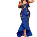 The women’s dress is crafted with graceful curves, rich colors, and vibrant Dashiki or Ankara-inspired patterns. The mermaid silhouette hugs the body beautifully, flaring out at the hem for a dramatic, elegant finish that commands attention on any aisle or dance floor.