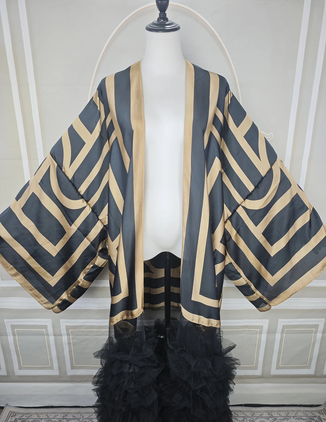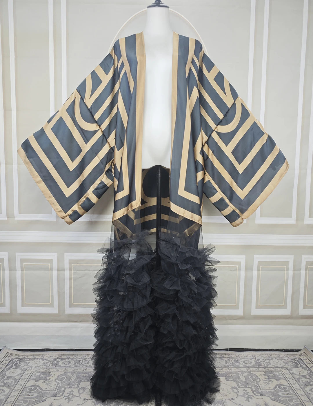 Women’s Summer Lace Hemline Kaftan Cardigan – African-Inspired Ramadan Evening Wear